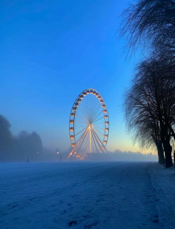 Riesenrad in Winterlandschaft