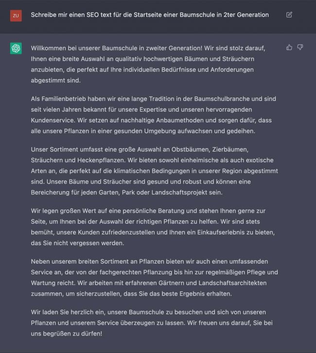 Kommen wir nun zu Best Practice zum Thema ChatGPT. Am Ende ist ChatGPT eine Chatzeile, in die man eine Frage stellen kann und es kommt immer sehr schnell eine Antwort.